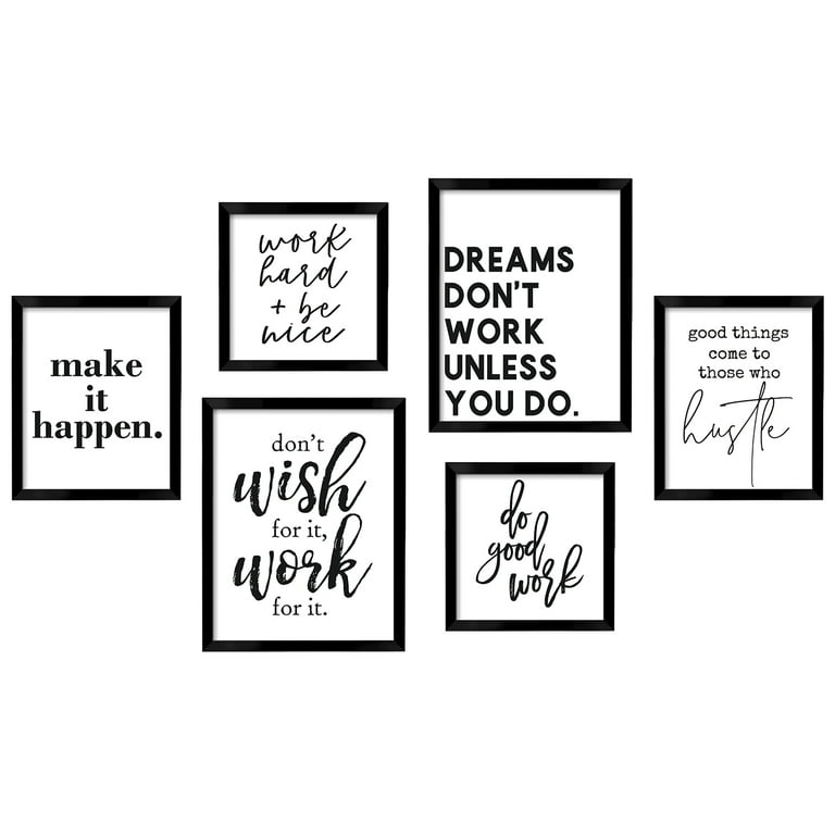 ArtbyHannah 6 Piece Motivational Framed Wall Art Set, Black